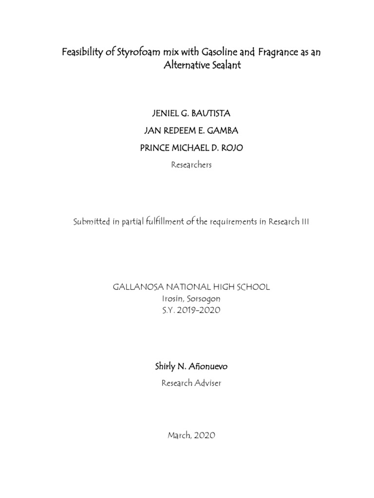 Feasibility of Styrofoam Mix With Gasoline and Fragrance As Alternative